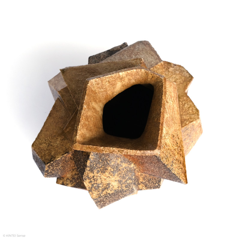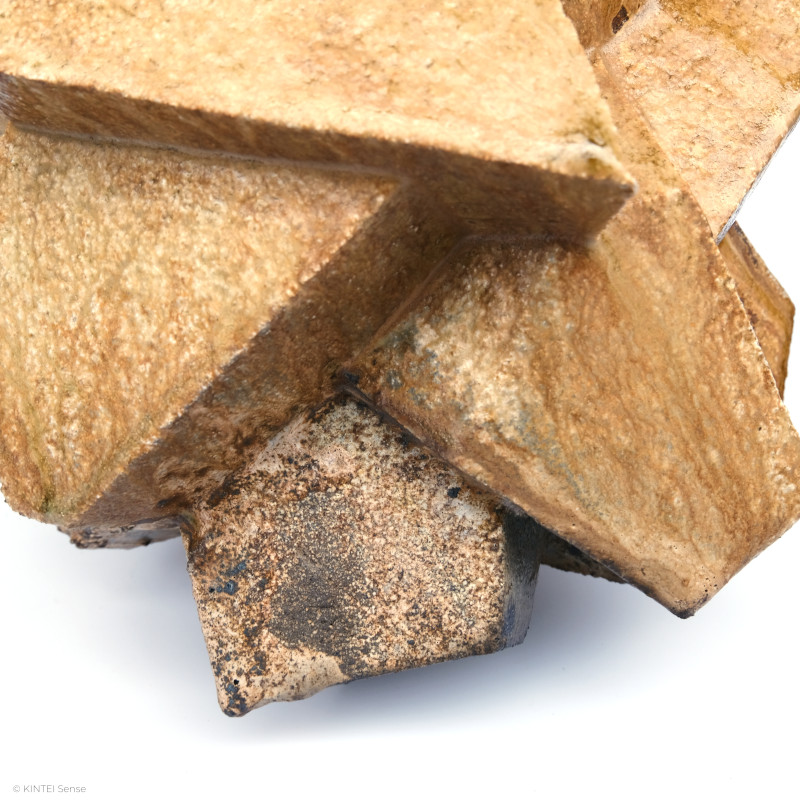 „Sitting“ verbindet Materialtradition und formale Freiheit: Der Ton und der Holzbrand verankern die Arbeit in Shigaraki, während die Konstruktion der Form bewusst davon abrückt. Die Anordnung geometrischer Elemente erinnert an die avant-gardistische Sodeisha-Bewegung, die in den 1950er-Jahren die traditionelle Funktion der Keramik zugunsten skulpturaler, freier Objekte („Objet“) radikal in Frage stellte. Trotz ihrer skulpturalen Präsenz bleibt die Arbeit zugleich eine Vase – und damit Teil der in Japan grundlegenden Idee funktionaler Keramik.